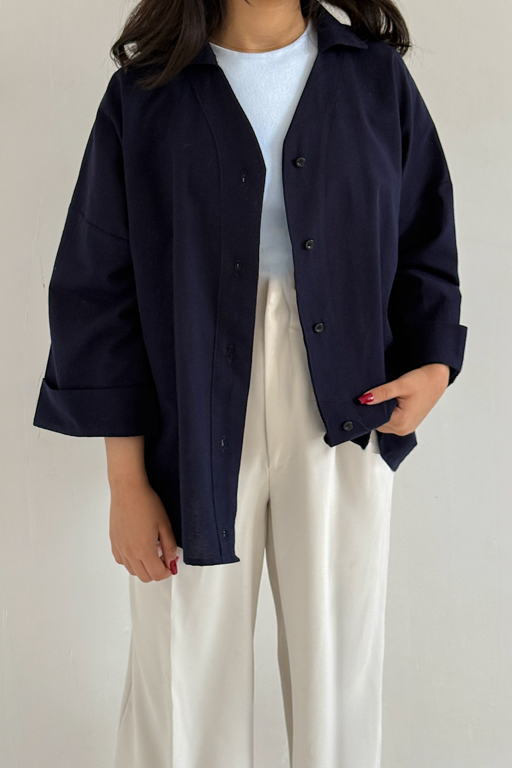 شومیز باکسی سورمه ای